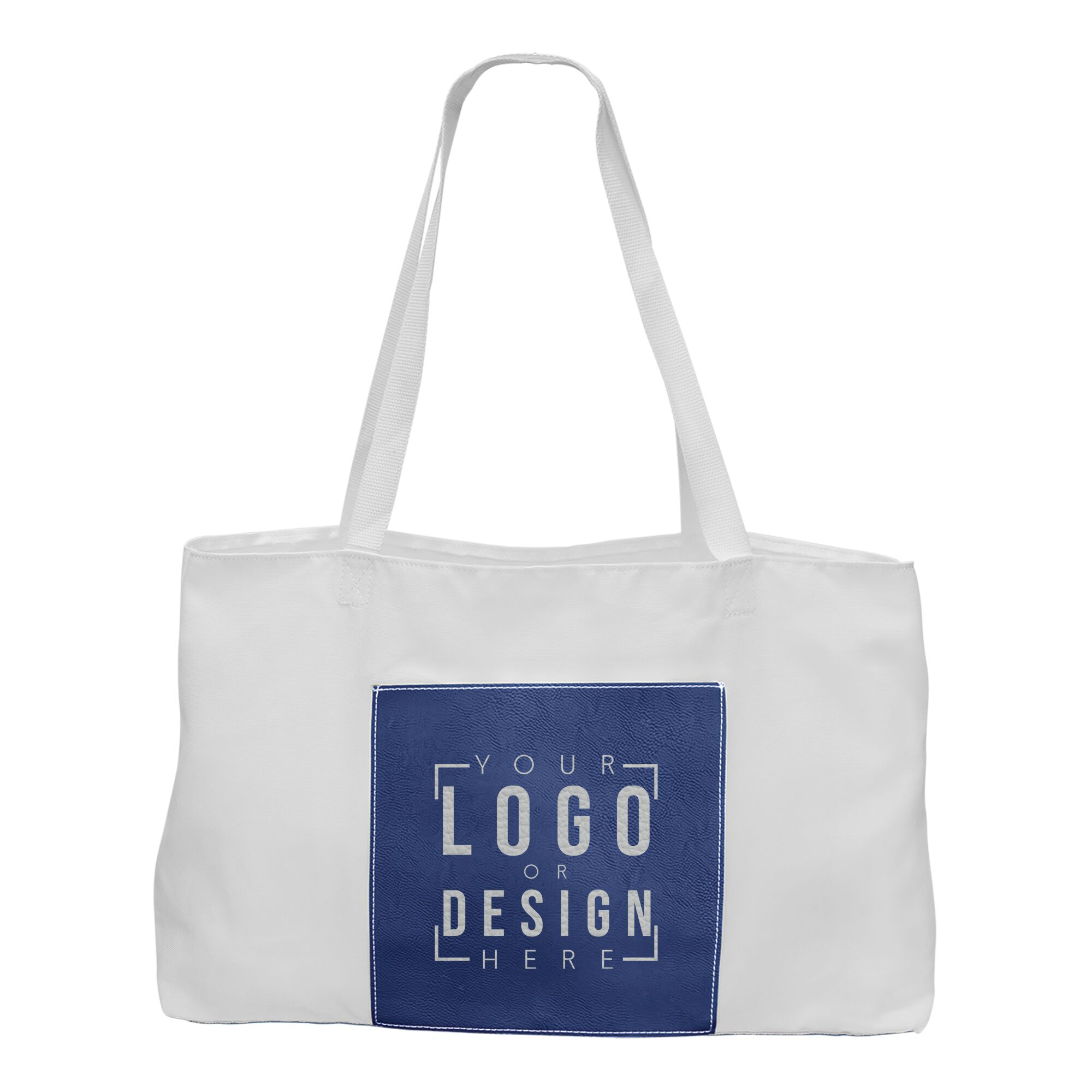 Custom Engraved White Bag with 5″ Rawhide Laserable Leatherette Gusset