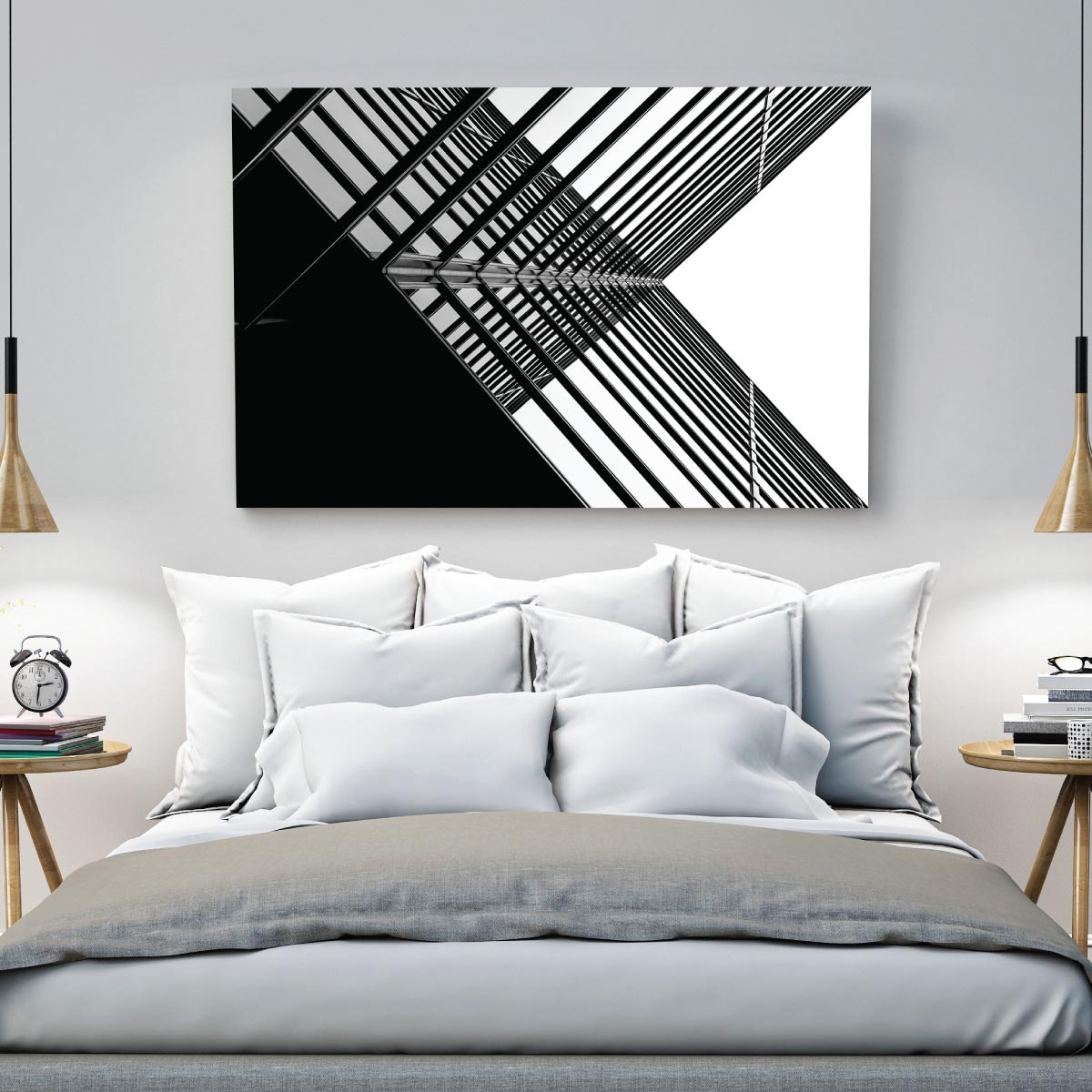 Transform your room with this symmetrical picture of a building printed on acrylic.