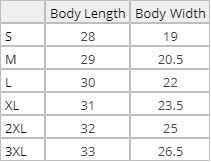| Size | XS, S, M, L, XL, 2XL, 3XL |