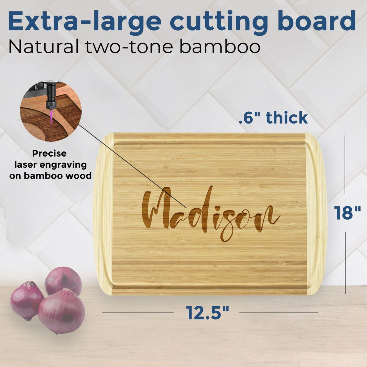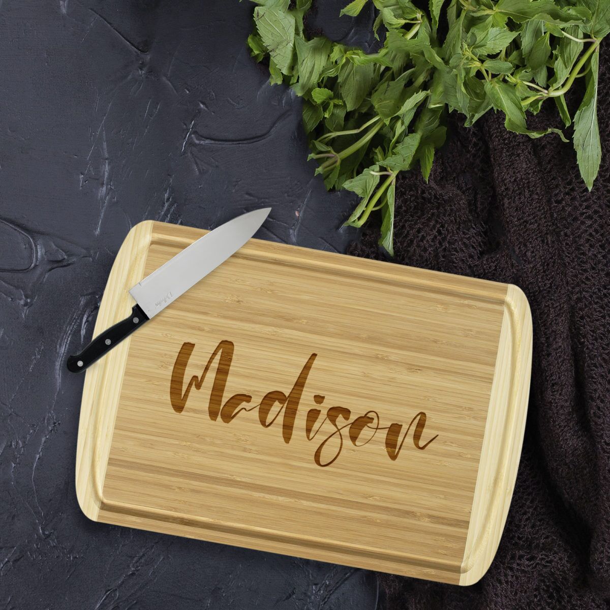 Personalized Bamboo Cutting Board with Juice Groove