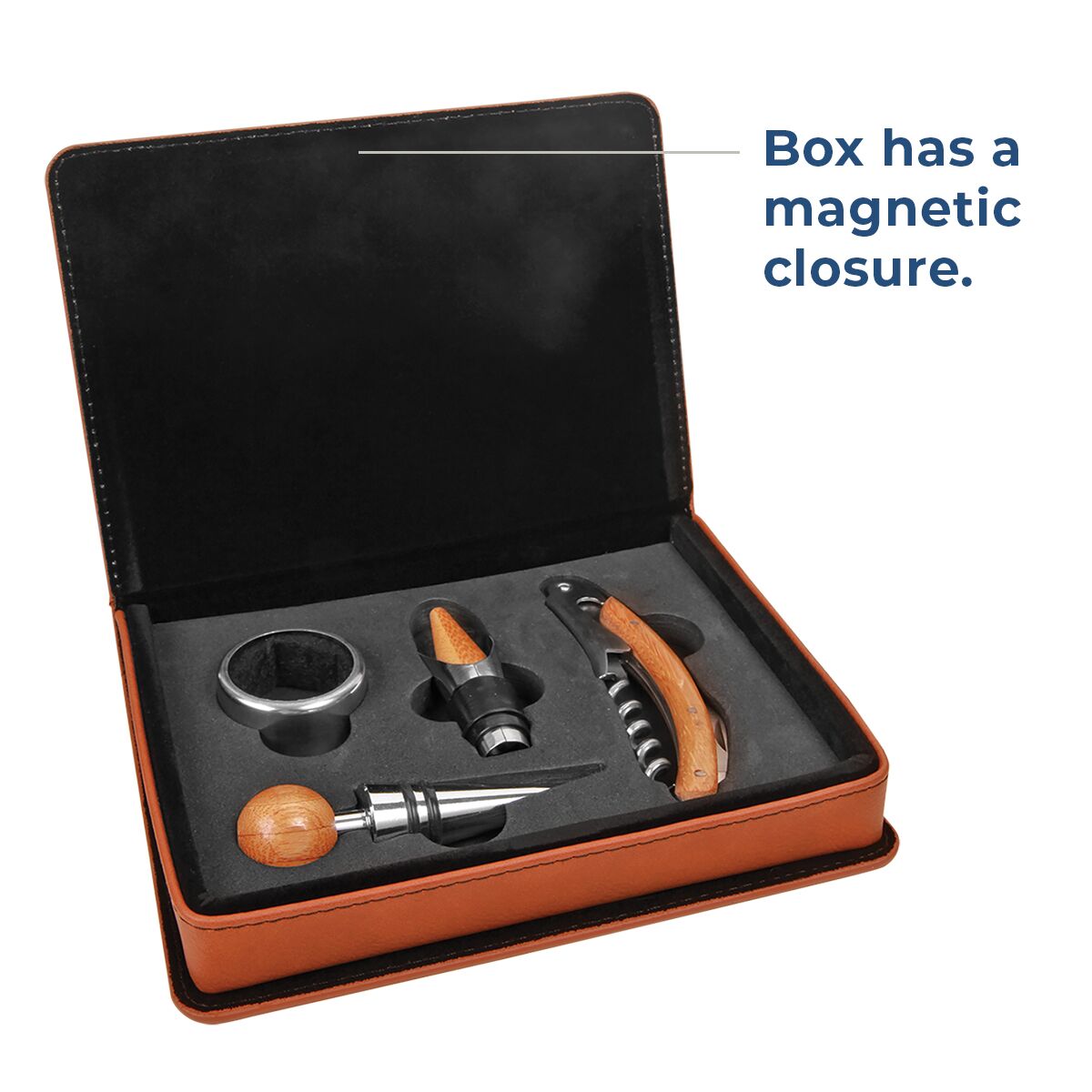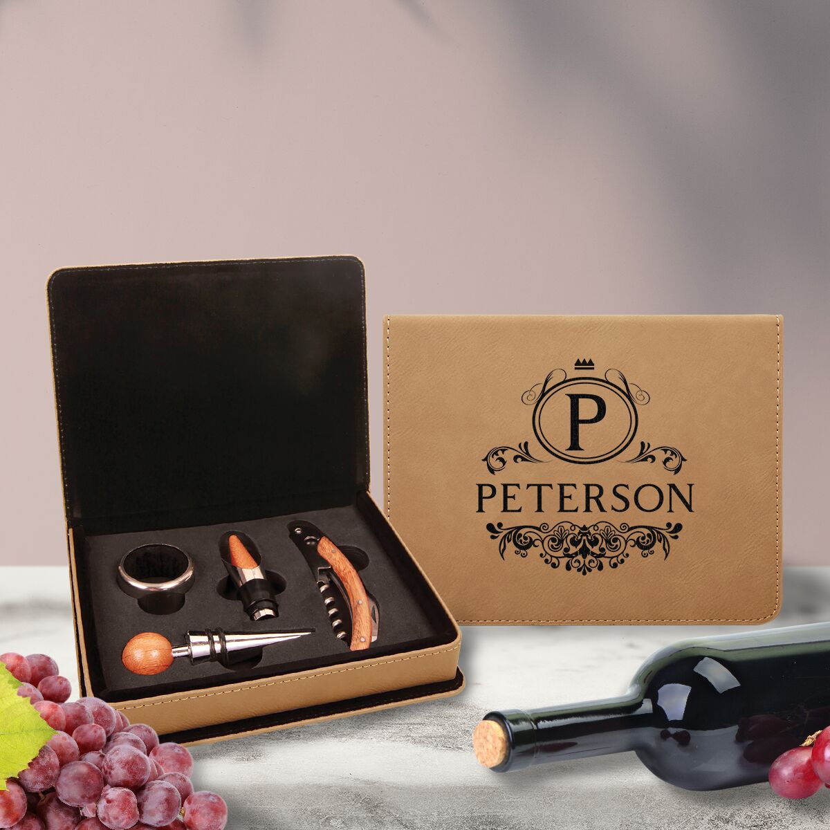 Opening a bottle of wine is a new discovery, a new experience filled with amazing flavors and delicious aromas. Surprise the wine connoisseur in your life with a PERFECT gift! This personalized 4 piece wine tool set contains all the essential tools necessary to open and store a bottle of wine! Its compact and travel size makes it perfect for picnics, days at the beach, or just for Saturdays spent outdoors. This dazzling wine tool set is sure to astonish your bridal party with bridesmaid and groomsmen!