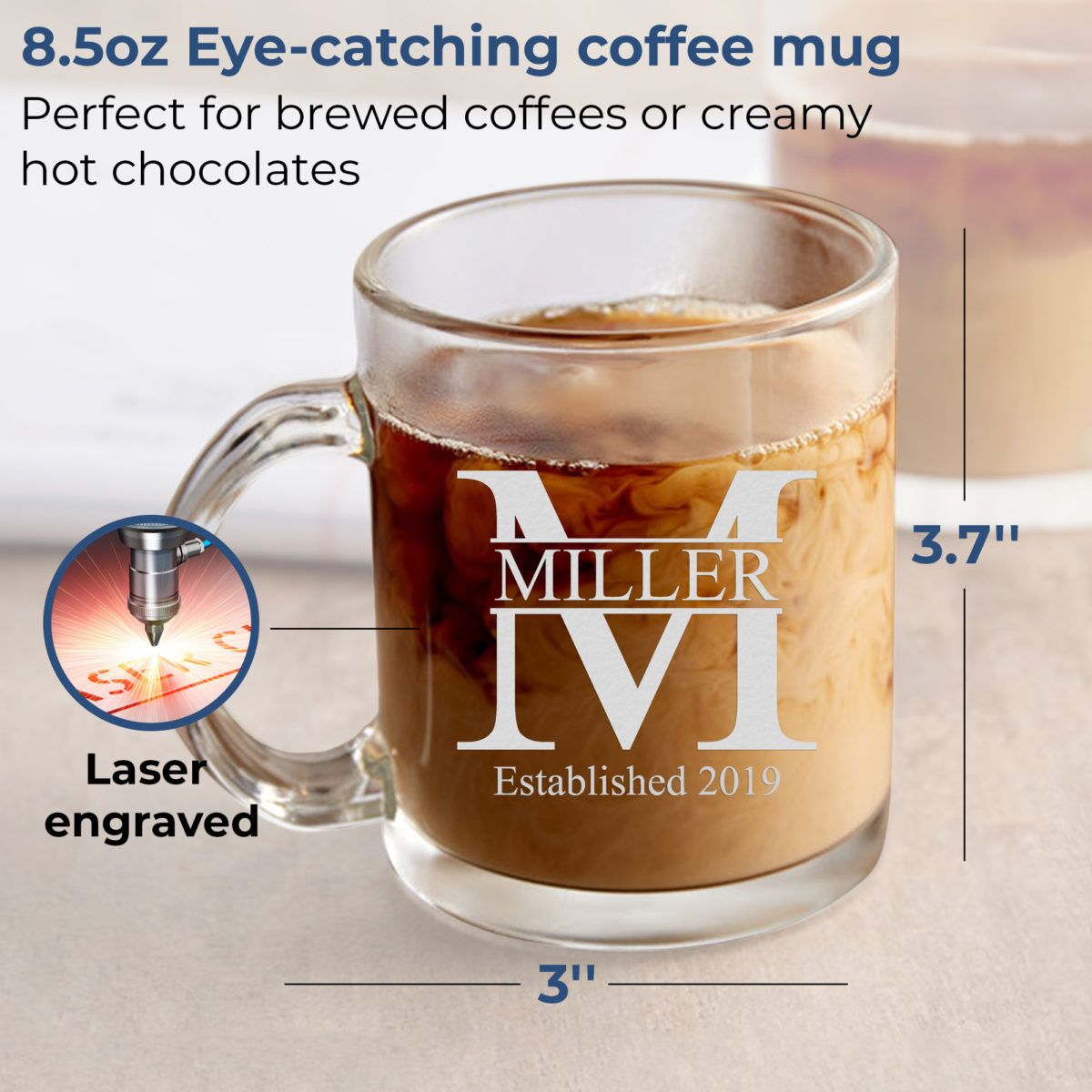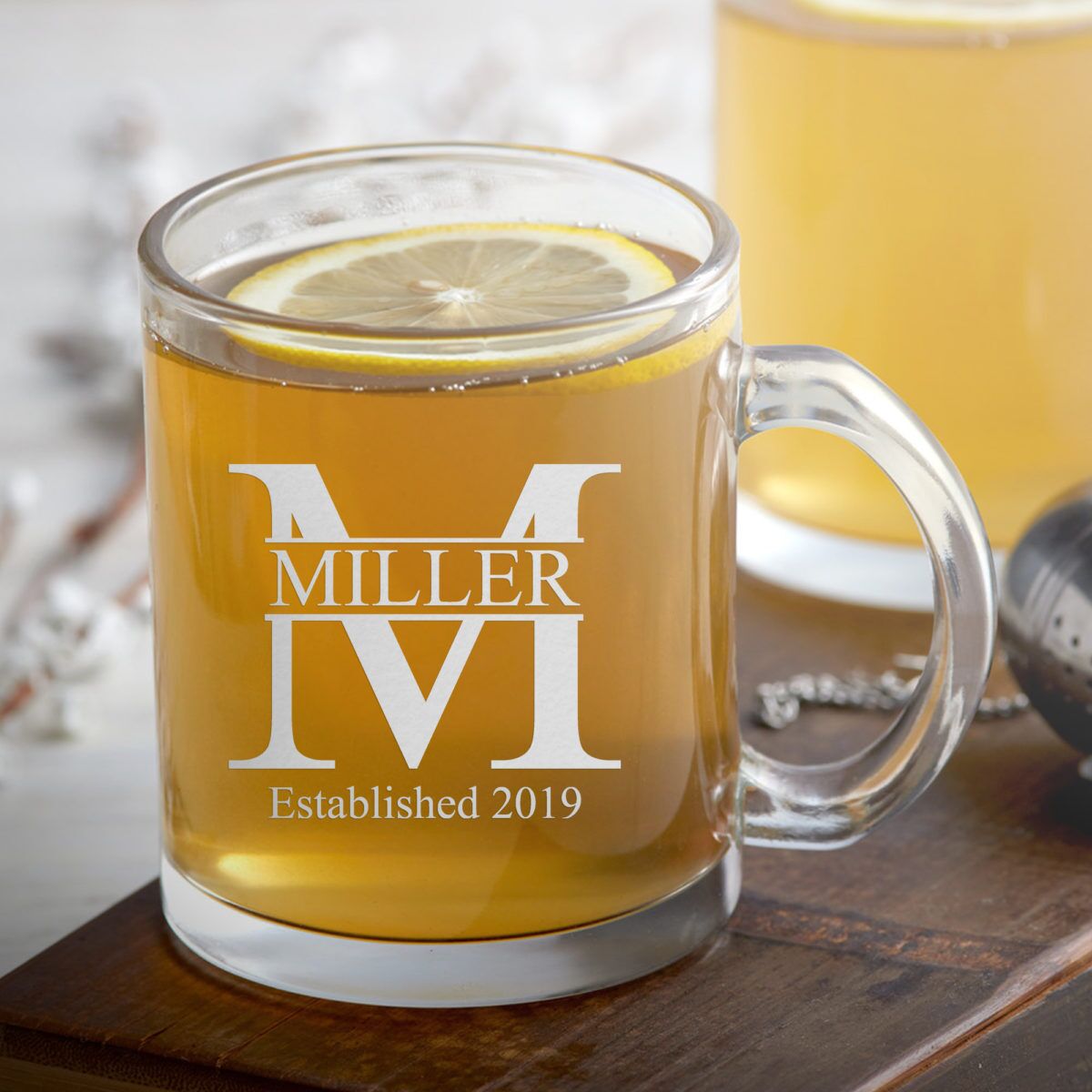This glass mug is the perfect gift for that coffee lover! A sure hit this useful keepsake comes personally engraved with any name to truly make this a special gift.