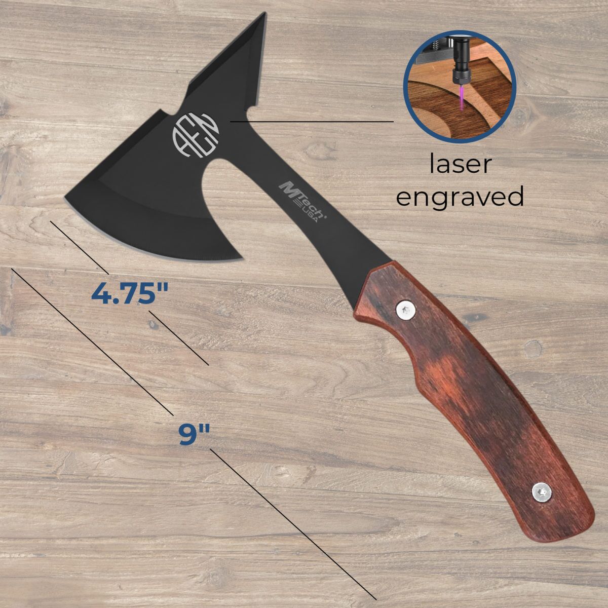 Personalized 9″ Tomahawk Throwing Axe with Wood Handle