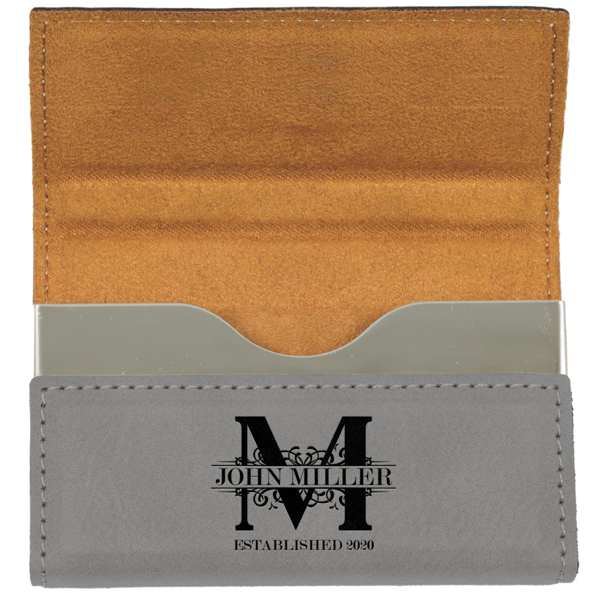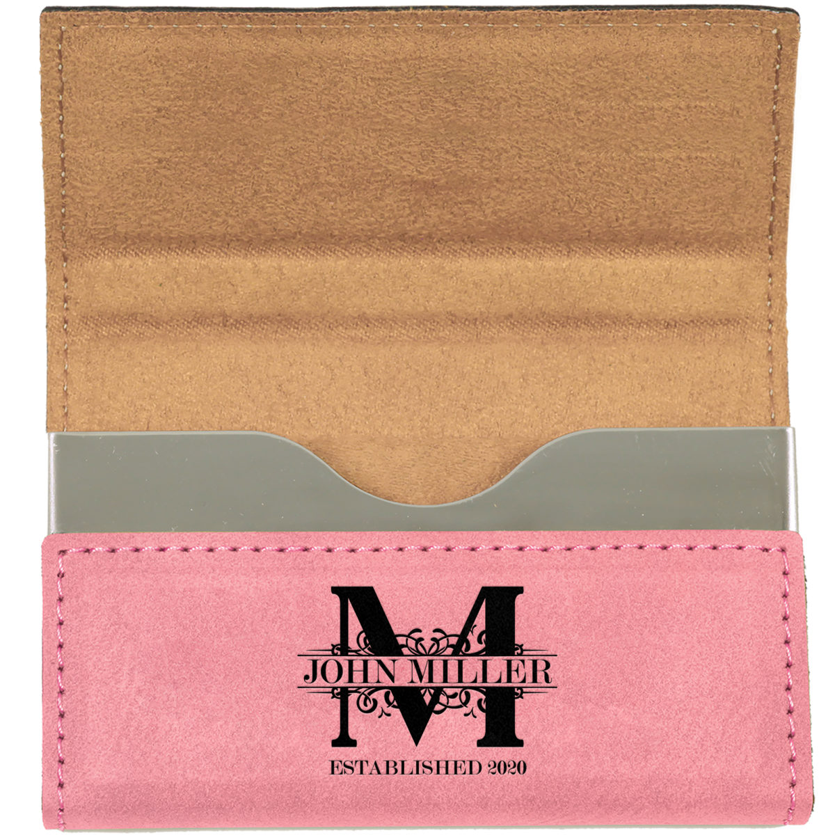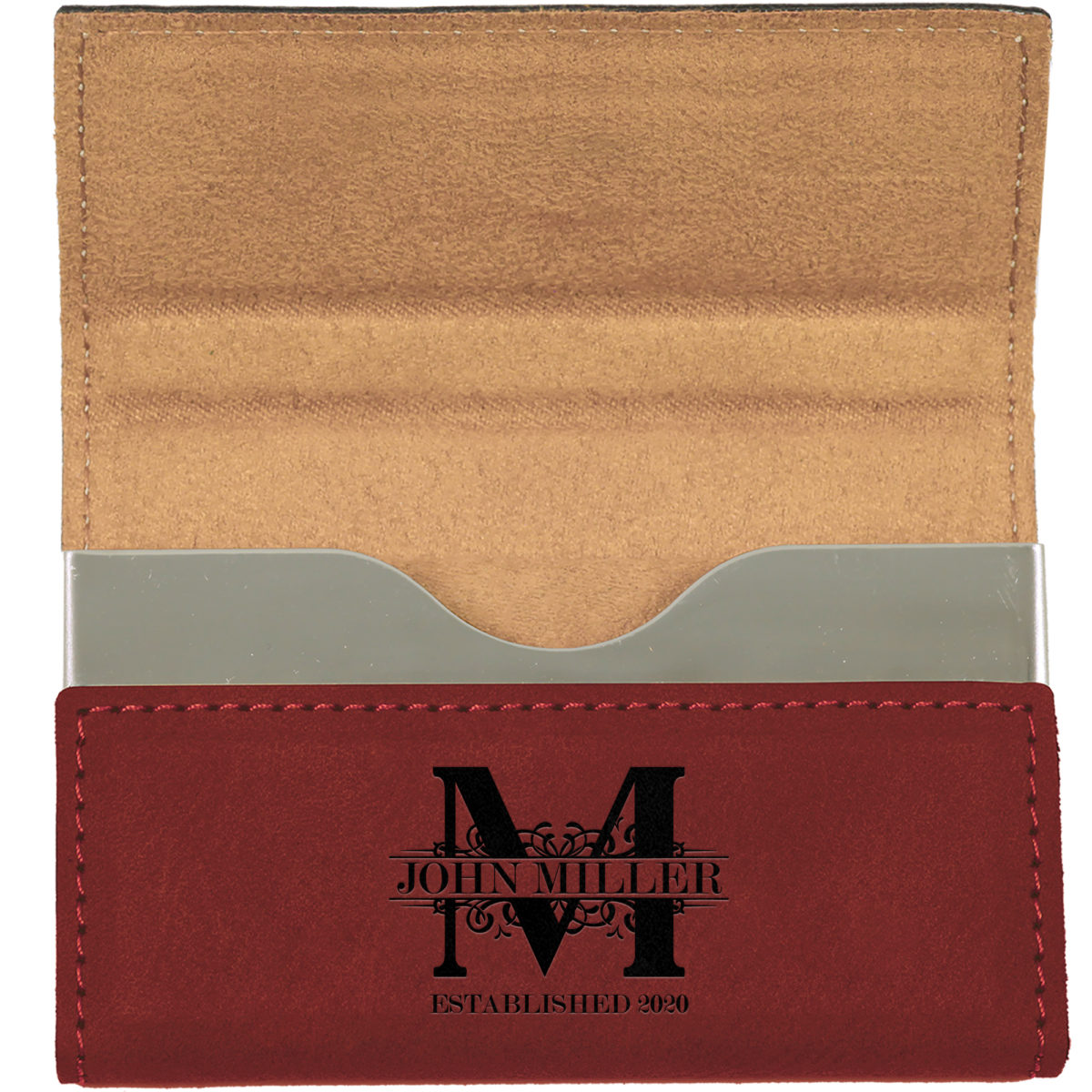 Always have clean business cards available with this personalized leatherette business cardholder. This faux leather material is both durable and beautiful. Its precise laser engraving makes this a beautiful gift for entrepreneurs or professionals.
