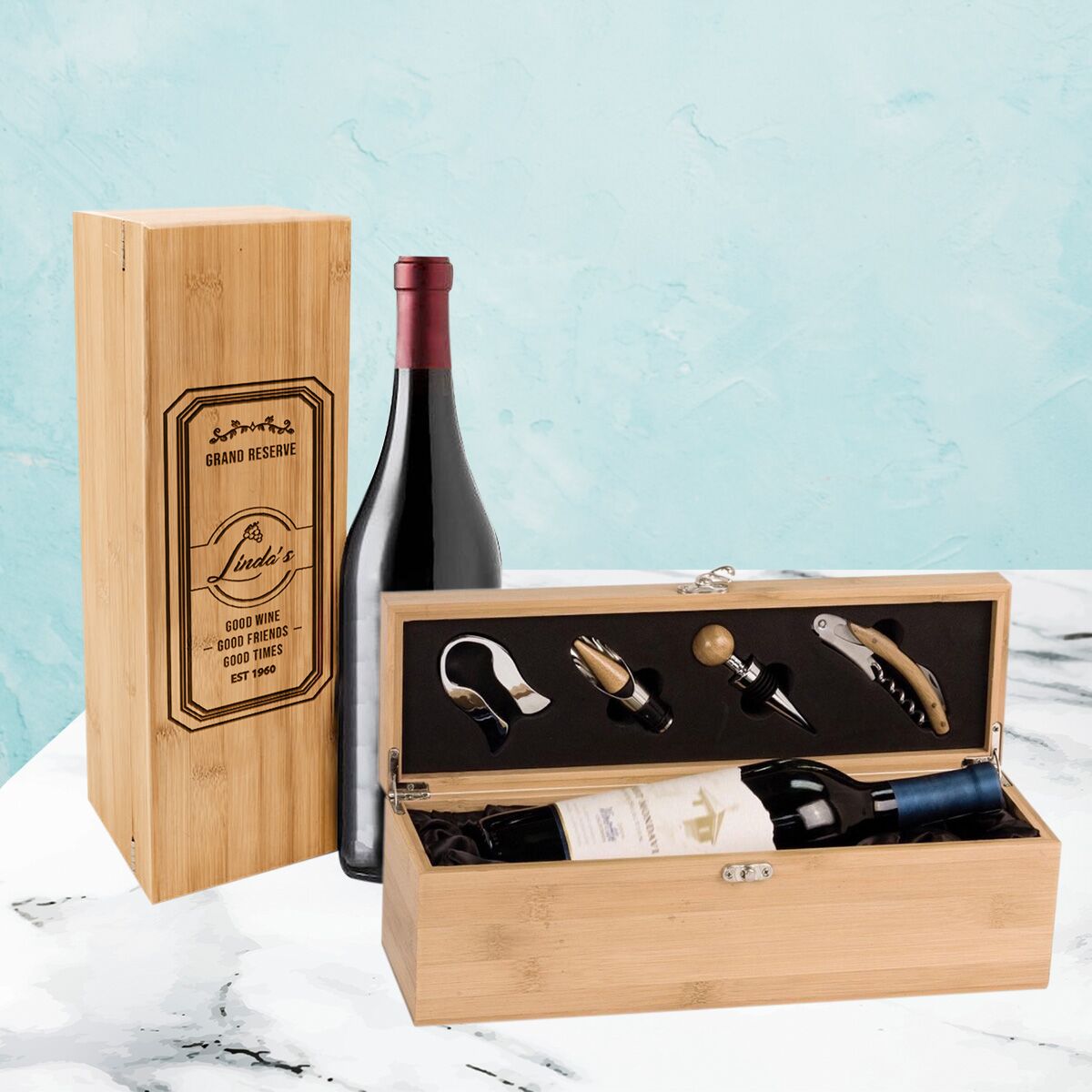 Personalized Wine Box with Tool Kit