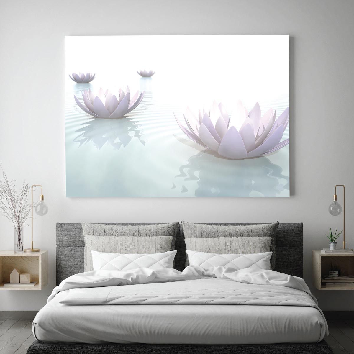 Complement any room with this beautiful acrylic print of lotus flowers moving on water illustration